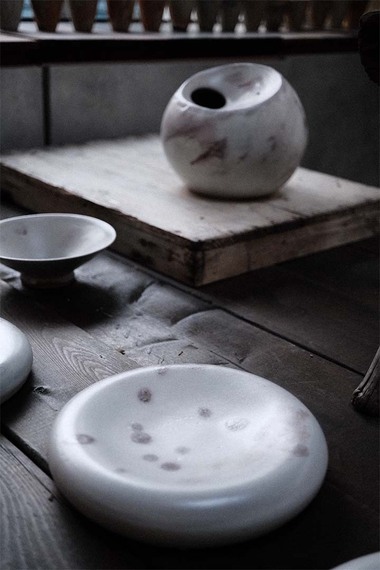 自一次從書中得知古人製陶方法,作者深受古人活用日常廢料如柴火灰,轉化為各種釉藥之美所感動。