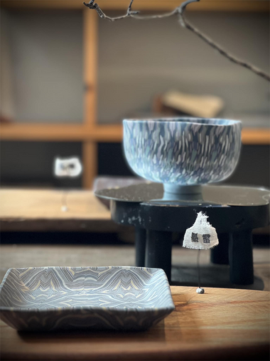 絞胎,為一獨特陶藝技法,「絞」為糸部,原意為兩或多股絲線相交擰結成的繩索,而絞胎則為胎土中有兩或多種不同土的相交組合,因而可製出如織品般雙面皆有織紋的陶瓷器,且具有自然曲扭紋理的線條,源自於唐代。