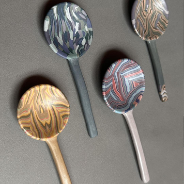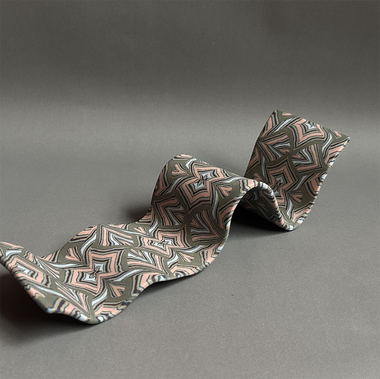 絞胎的線條拼合後形成多層或菱形、或矩形、或銳角、或直角、或鈍角、或曲線……等形成具有方向性、指向性,有速度感、有節奏性的連續線條,形成不同表情、不同個性之抽象意象,而絞胎的特性則讓這些層層線條產生不定的拉動、顫動的線性運動畫面。